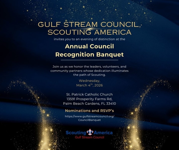 The Gulf Stream Council, Scouting America, owes a debt of gratitude to the volunteers who breathe life into the program. Please join us on March 4th, 2026, as we recognize some of those who have made such a difference in the lives of our youth.